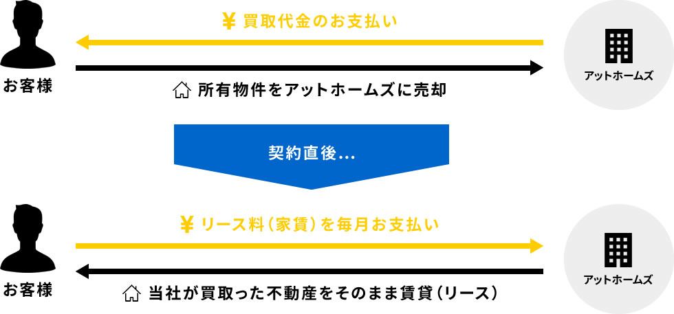 まとまった資金を捻出したい。お客様のマイホームをアットホームズが買い取り、お客様は賃貸物件としてそのままお住まい頂けるシステムです。